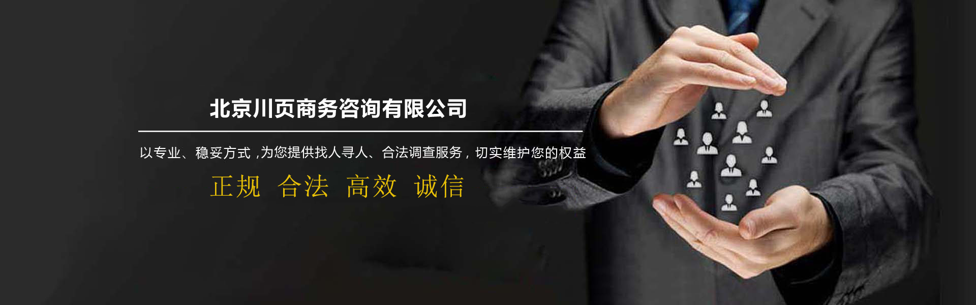 北京市偵探公司-北京川頁(yè)商務(wù)咨詢有限公司是面向全國(guó)提供找人尋人服務(wù)平臺(tái),公司致力于為企業(yè)、個(gè)人解決發(fā)展中各類債務(wù)問(wèn)題、債權(quán)訴訟、債權(quán)轉(zhuǎn)讓事務(wù),幫助快速尋找親人、朋友、戀人、戰(zhàn)友等找人服務(wù),以及婚姻家庭情感咨詢等業(yè)務(wù)。公司擁有一批律師,商賬管理師專業(yè)的工作人員,依托互聯(lián)網(wǎng)平臺(tái),在國(guó)內(nèi)形成了完善的調(diào)查尋人服務(wù)網(wǎng)絡(luò),業(yè)務(wù)范圍已經(jīng)逐漸覆蓋北京及全國(guó)各大主要城市和地區(qū)。我們始終秉承"捍衛(wèi)真理、堅(jiān)持誠(chéng)信、以人為本、奉獻(xiàn)社會(huì)"的服務(wù)理念和"專業(yè)、創(chuàng)新、和諧、共贏"的經(jīng)營(yíng)理念,我們希望通過(guò)提供全面、及時(shí)、準(zhǔn)確、專業(yè)的相關(guān)信息,以優(yōu)質(zhì)的服務(wù),專業(yè)的技巧,為各位有需求的人員提供服務(wù)!